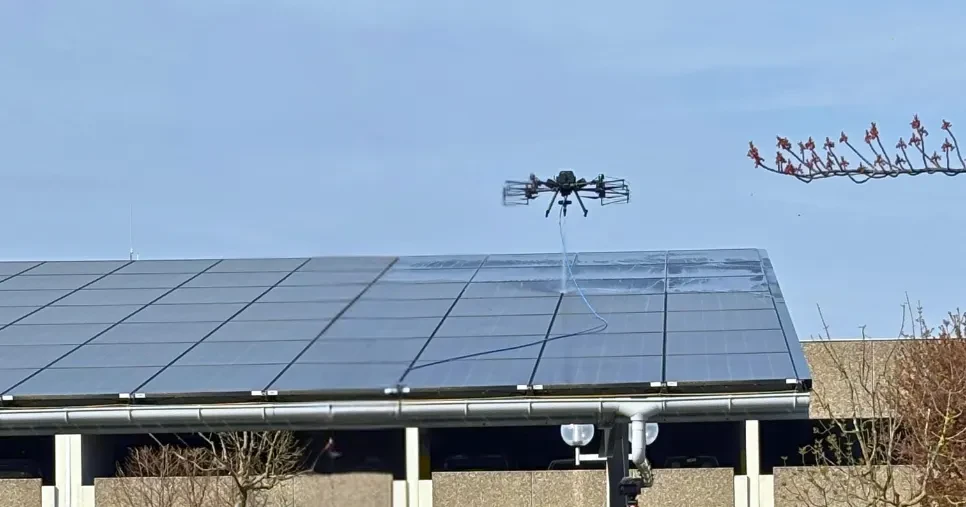Démonstration de nettoyage de panneaux solaires par drone : une intervention en conditions réelles