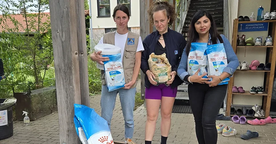 Un caddie solidaire rempli de croquettes, pâtée Royal Canin et matériel offert par Kartal Propreté pour aider le refuge LPO Alsace à nourrir et soigner les animaux sauvages en détresse. Un geste concret qui reflète l’engagement écologique et local de l’entreprise de nettoyage à Strasbourg.